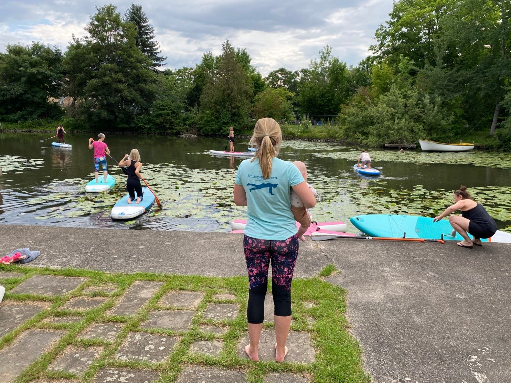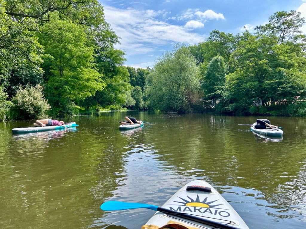 SUP Pilates auf dem Stand Up Paddle Board verbindet Fitness, Entspannung, Spaß & Natur.